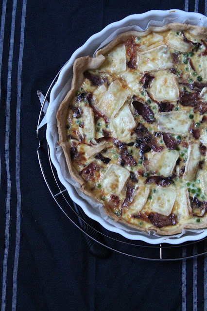 Celle-ci provient du magazine Zeste et je dois avouer qu’avec Monsieur C on l’aime bien. D’ailleurs c’est la troisième fait qu’on la cuisine et qu’on se régale. Cette fois pas de courgettes mais des petits pois. Pas de fromage industriel type Kiri, Vache qui rit, Saint Moret. Juste des petits pois de la pancetta et du brie.