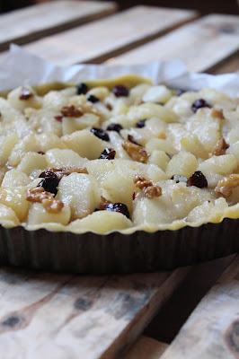 Le côté sucré de la poire avec le croquant des noix se marie à merveille avec la pâte sablée au parmesan. A vous de choisir maintenant si vous préférez la servir en entrée ou en dessert.