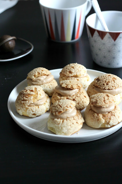 Deux semaines plus tard, crémaillère et je re-tente les choux. On a investi dans un pot de 1kg de pâte de praliné, juste pour en refaire plein chez nous et pis au cas ou je ferais foirer la crème pâtissière une seconde fois. C’est une recette qui nécessite du temps pour pouvoir effectuer toutes les étapes une par une et aussi respecter les temps de repos (repos de la crème pâtissière pendant 2h). Au final c’est un régal. J’espère que cela vous plaira !