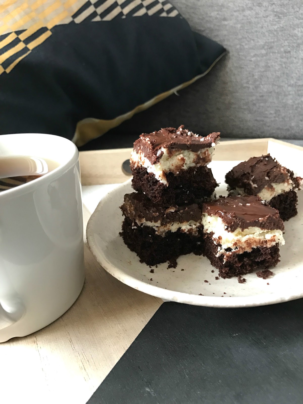 Avec ce temps hivernal et cette pluie sans fin, j’ai passé pas mal de temps aux fourneaux ce dimanche. Cette recette était dans ma liste depuis un petit moment et il me tardait de la préparer. Comme j’avais tous les ingrédients sous la main, j’ai décidé d’essayer la recette. Ce mix de chocolat/ coco me rappelle légèrement le gout des Kinder Délices à la noix de coco. J’en ai eu mangé (ok je l’avoue) mais c’était il y a très très longtemps. N’oubliez pas de les mettre au frigo, c’est ce qui va donné ce petit gout frais.  Bref c’est la bonne recette pour vos prochains goûters pluvieux!