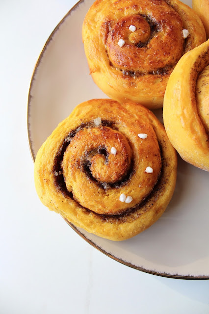 Cela faisait longtemps qu’il n’y avait pas eu de recette de brioche ici. Il y a avait déjà des recettes de cinnamon rolls sur le blog avec celle-ci (la classique et ma préférée), celle-ci avec de la carotte et cette dernière avec de la purée de patate douce. Il y en a maintenant une quatrième avec du potimarron. J’avoue qu’intégrer des légumes dans une recette de brioche, est toujours un peu bizarre quand on le dit. A mon avis cette pratique est peu ancrée dans nos moeurs de petit français.