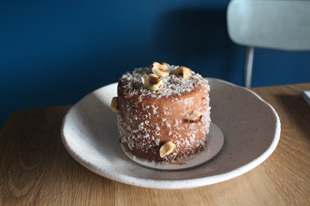 Je me suis rabattue sur celui à la rhubarbe avec son biscuit au riz soufflé (une très bonne alternative), le Noisette (un poil écoeurant) et le Fraisier (très leger en bouche). Mon préféré à clairement été le dessert à la rhubarbe, on en trouve très peu en pâtisserie en plus. De toute façon il faudra que je repasse gouter ce “Peanuts”.