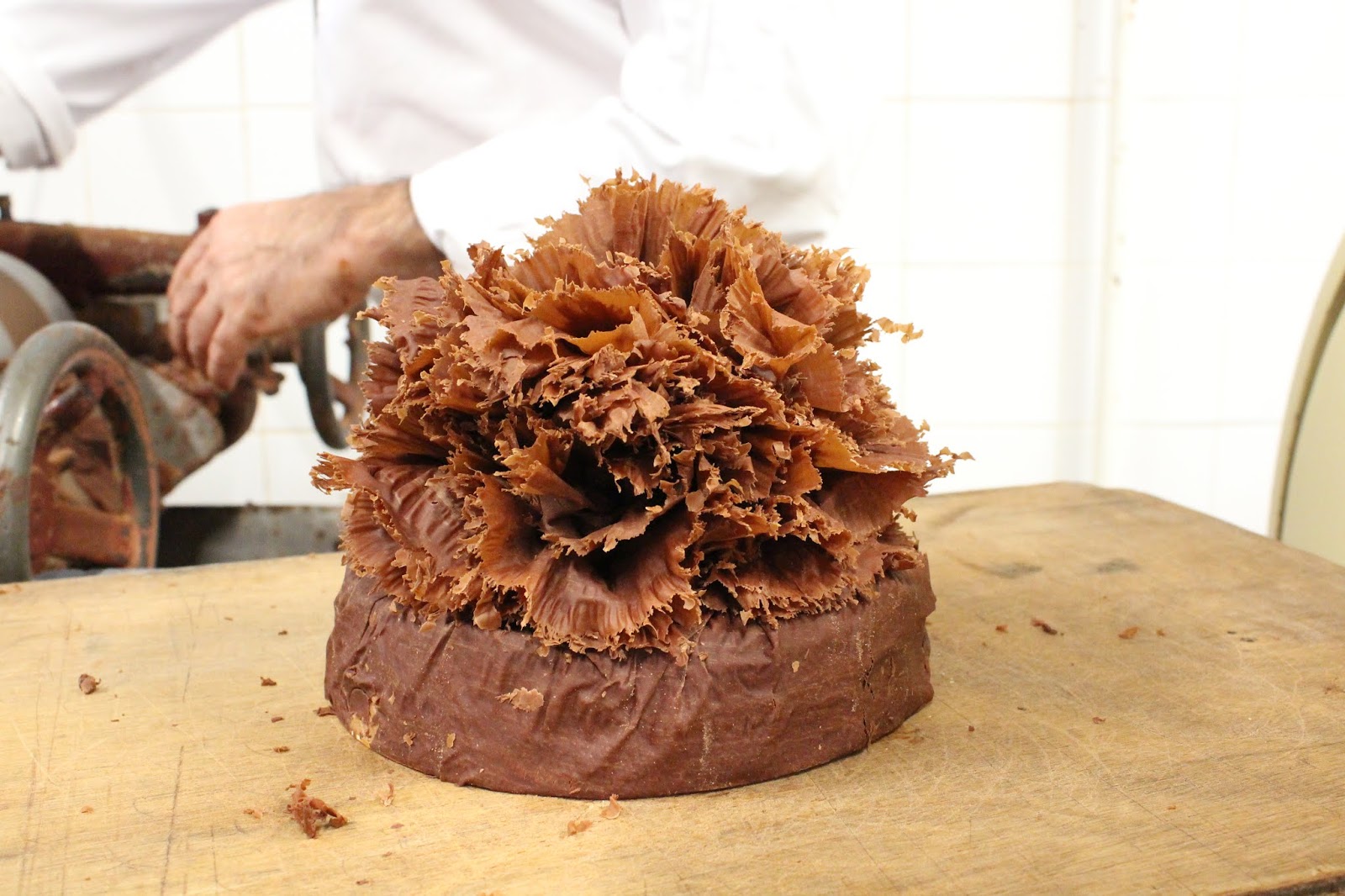 La famille Bernachon fait partie de ces rares artisans à maitriser le processus complet de création du chocolat. Ici dix sortes de fèves sont utilisées, elle proviennent de loin : Java, Madagascar, Amérique Centrale, Venezuela, Pérou. Elles sont triées puis grillées, la torréfaction dure une vingtaine de minutes. Ensuit les peaux des fèves sont enlevées ce qui permet d’obtenir le grué de cacao.