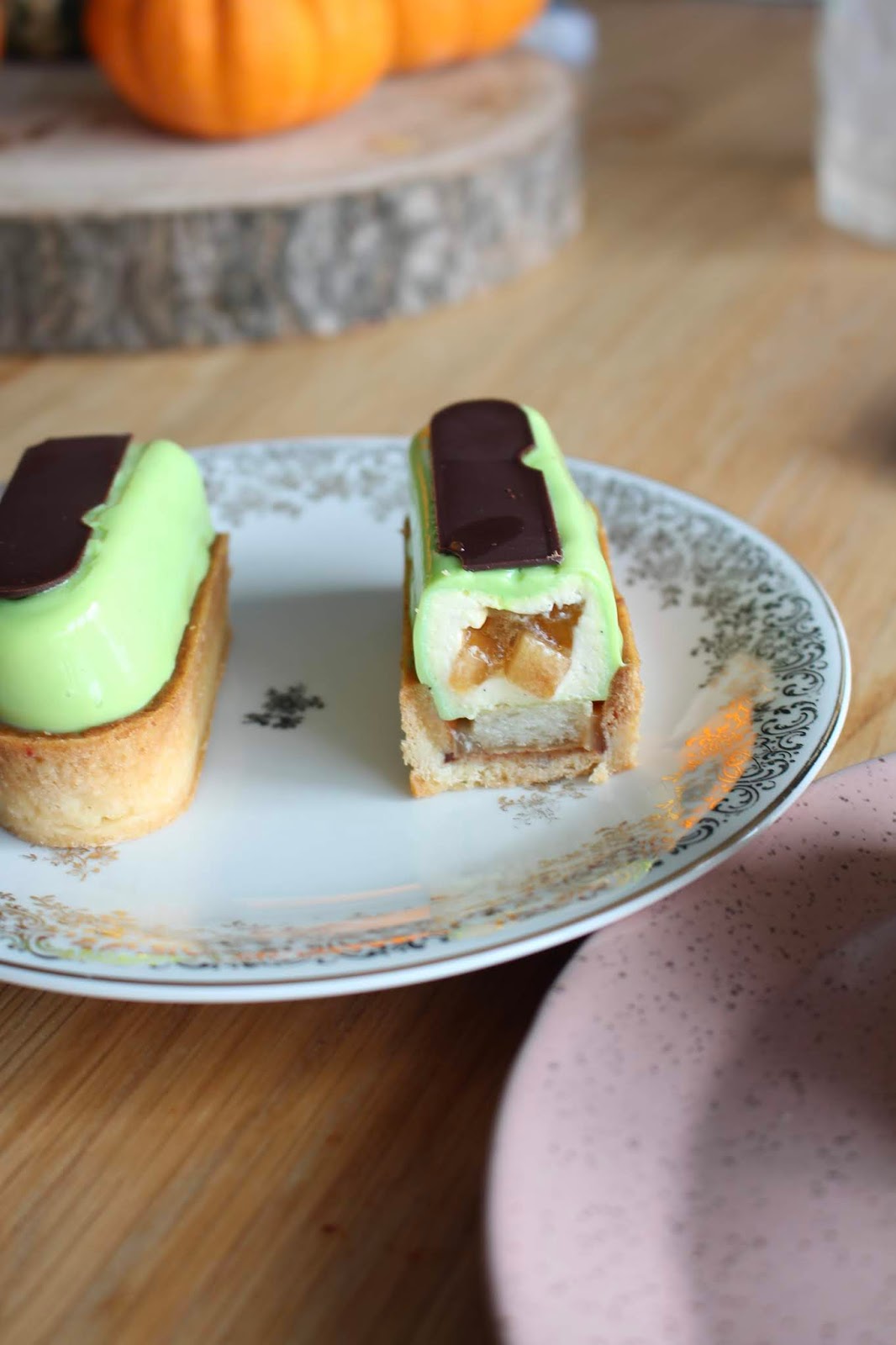 La tarte Passion, chocolat au lait et cacahuète (le best seller d’après Clément Mariller) et la dernière arrivée à la carte la tarte Pom d’Happy.