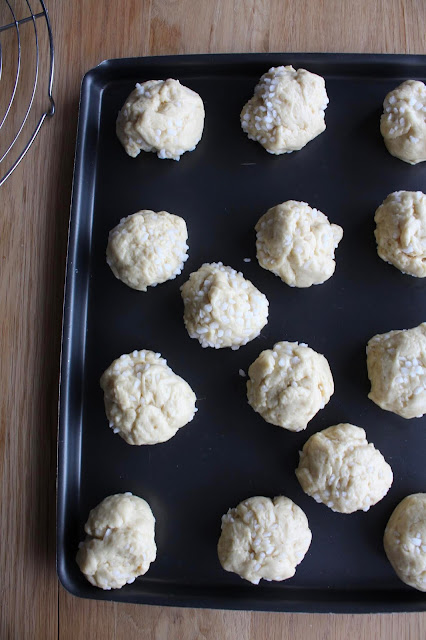 Façonnez grossièrement des boules de pâte , placez- les sur une plaque de cuisson et laissez reposer 30 min