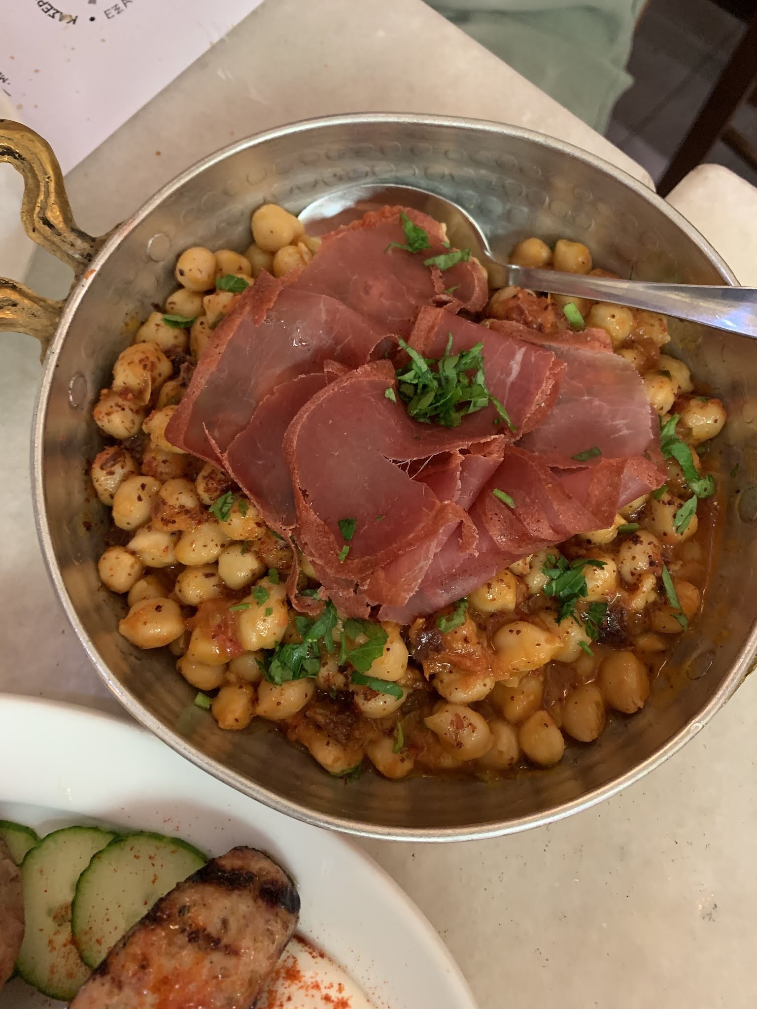 On vous y sert du pastrami à votre arrivée et ensuite on peut en avoir dans plusieurs plats. Les assiettes de saucisses grecques sont généreuses et pratique à partager. Les feuilles de vignes sont excellentes.