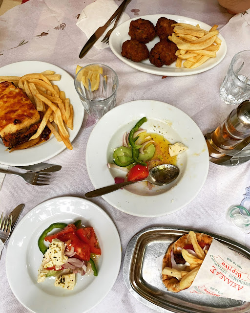 Des calamars et surtout ceux en tempura de chez Ergon House , les plats sont classiques mais tous très bons. Niveau prix on est plutôt sur des tarifs français que grec. Le cadre est par contre magnifique et il y a un côté épicerie.