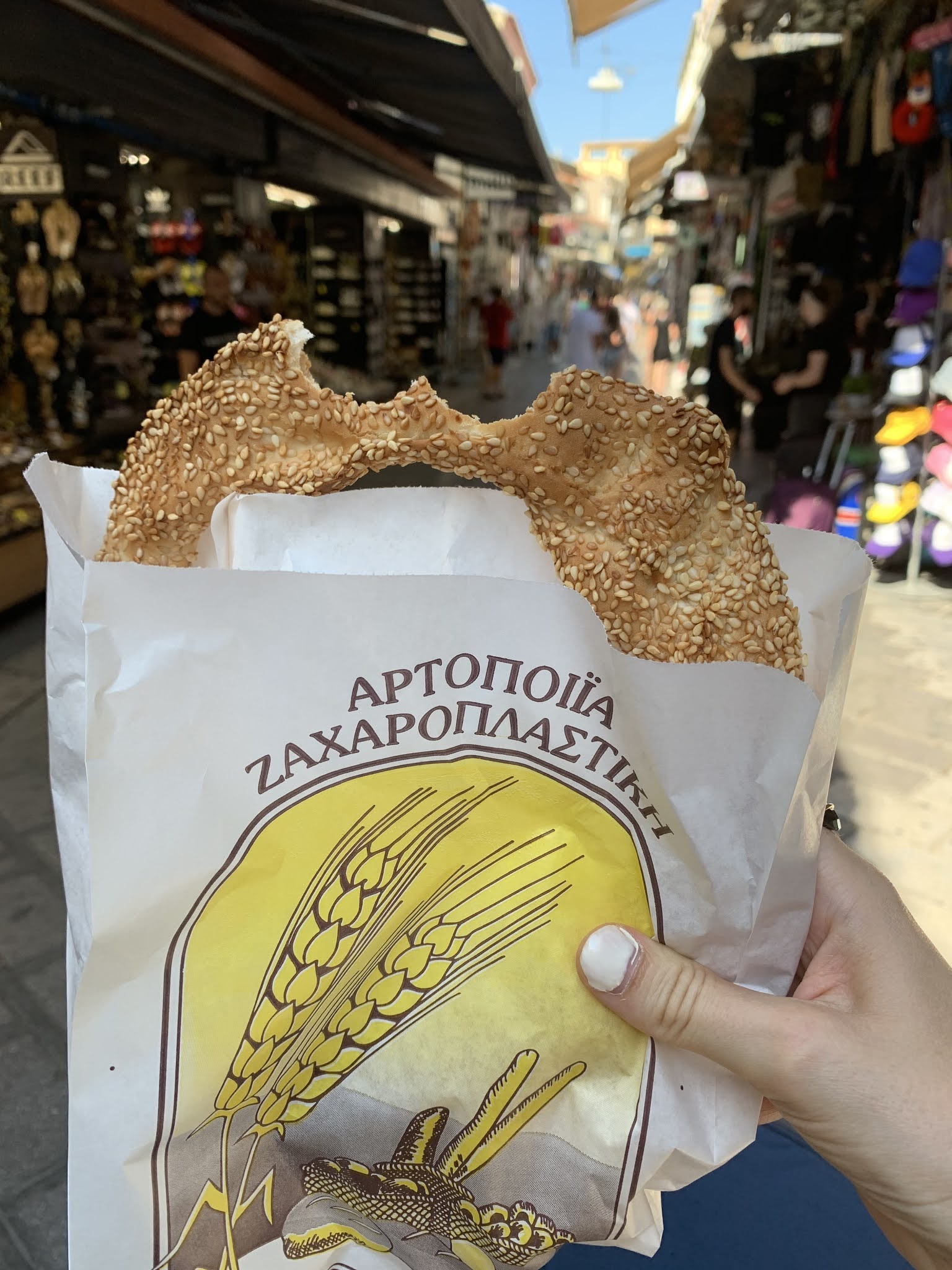 Des koulouri (petit pain grec au sésame) chez To Koulouri To Psyrri , ils ont une boulangerie et approvisionne un grand nombre de kiosque dans Athènes. Vous pouvez les trouver dans des petits kiosques en ville, c’est très pratique en cas de petite faim